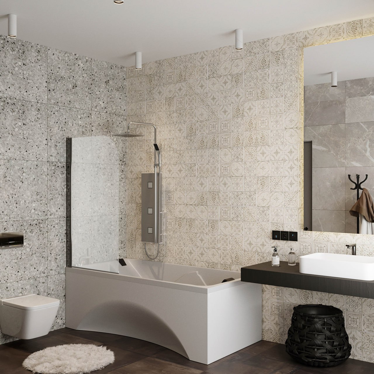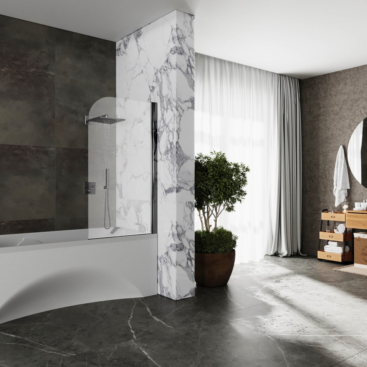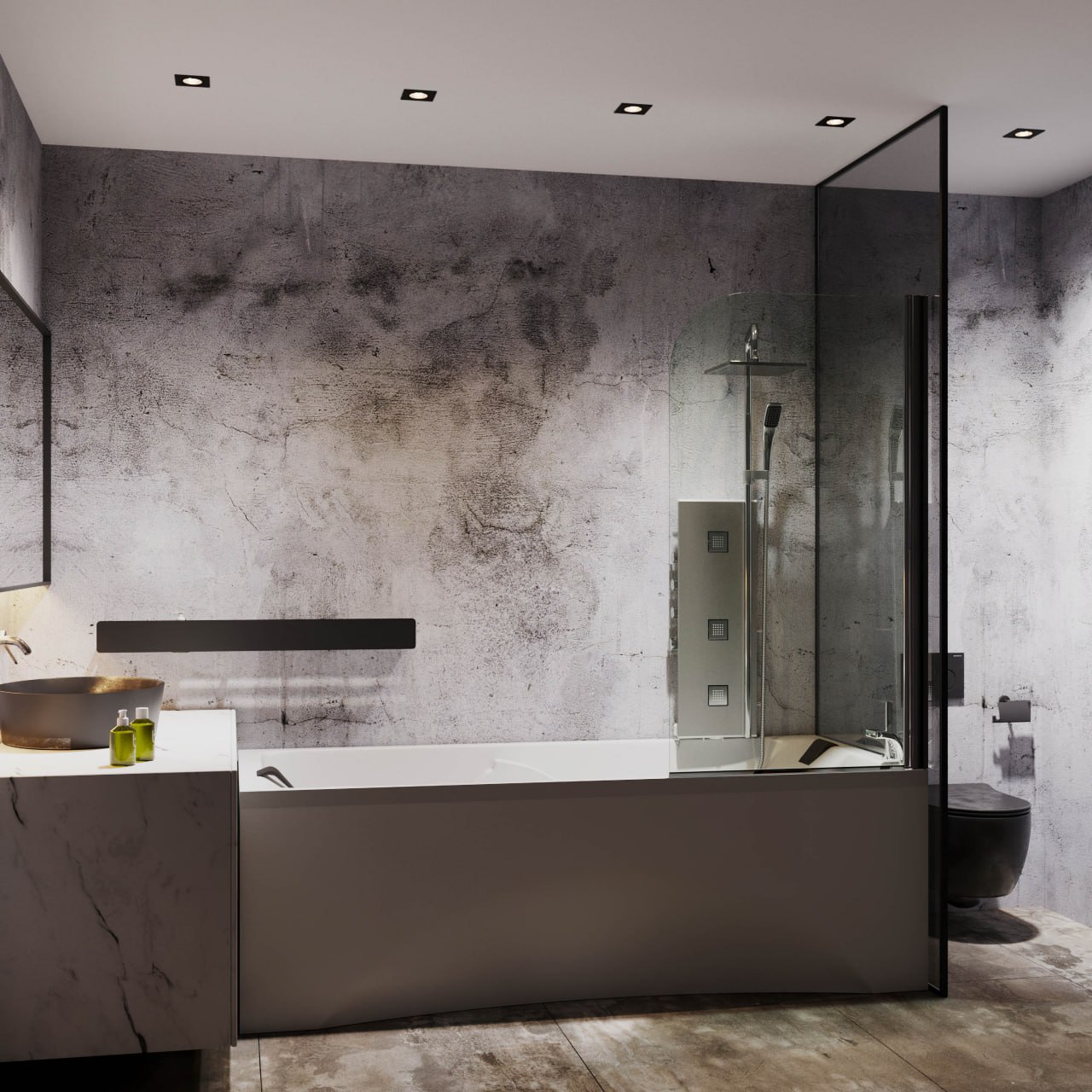 Душевая шторка на ванну Roxen Brimen 80 с черным профилем - одностворчатая распашная модель с прозрачным стеклом и маятниковой системой открытия. Установка шторки - универсальная, на правую или левую сторону. Уникальная система поворота шторки, которая приподнимает ее при повороте и опускает при возврате в исходное положение, позволяет сделать минимальным зазор между бортиком ванны и стеклом, таким образом устраняя протекание воды. По нижнему краю шторки установлена специальная силиконовая накладка, которая направляет стекающие капли воды в ванну. Прочный профиль изготовлен из анодированного термостойкого алюминия со специальным покрытием DeepBlack, которое на долгие годы сохраняет насыщенный цвет изделия, предотвращает образование коррозии защищает от царапин. Прозрачное ударопрочное стекло 6 мм с водоотталкивающим покрытием EasyClean, которое значительно облегчает уход за изделием. Профиль пристенный, с возможностью регулировки. Подходит для установки на любую прямоугольную ванну.
