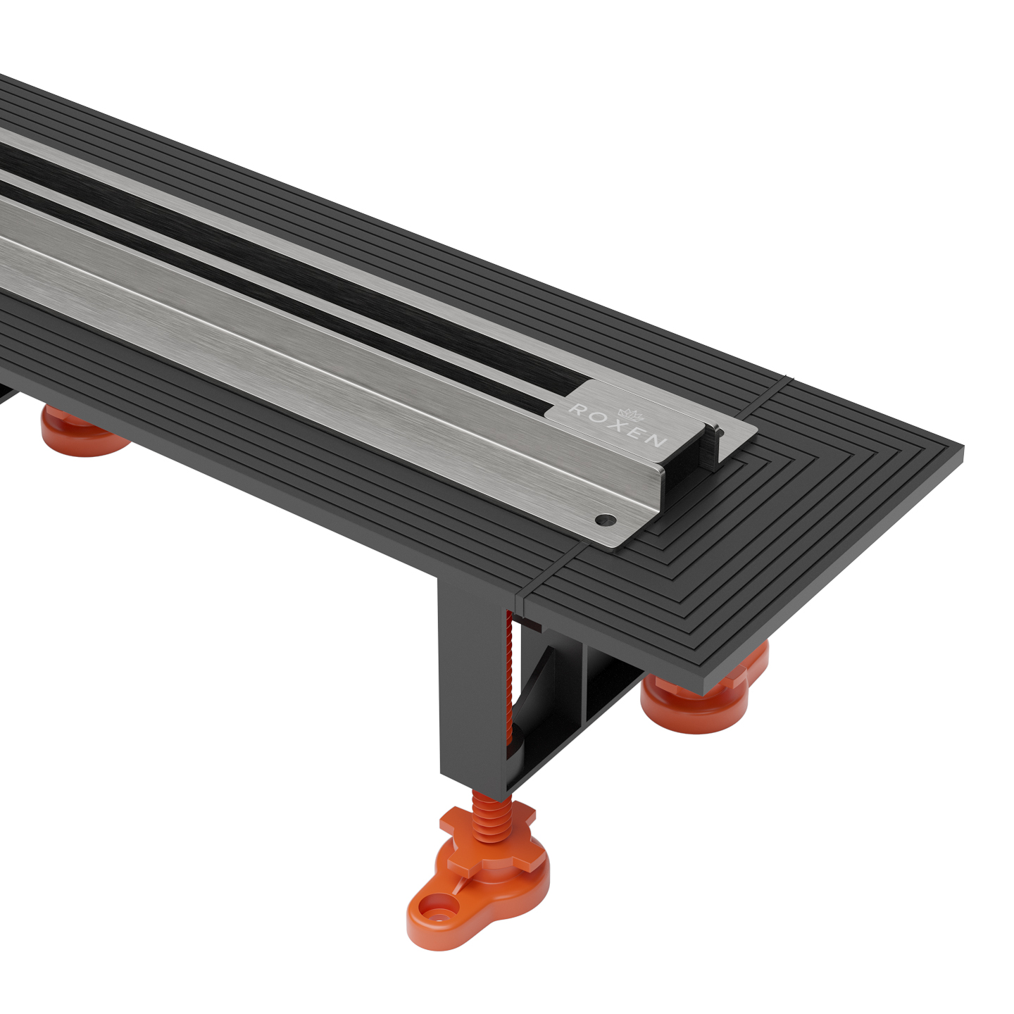 Душевой лоток предназначен для установки вровень с полом. Регулируемые ножки позволяют нивелировать неровность пола и добиться идеальной плоскости при установке. Особенностями данной модели являются низкая монтажная глубина (67-82 мм), которая дает возможность установить лоток в любом месте, а также возможность обрезки душевого трапа.