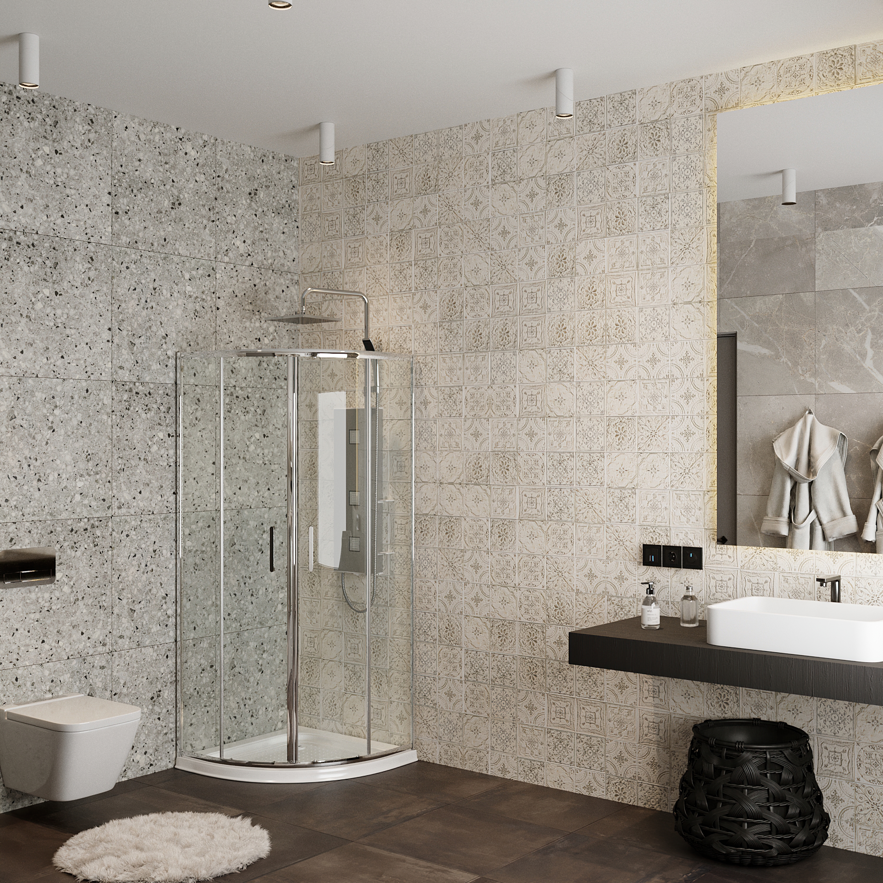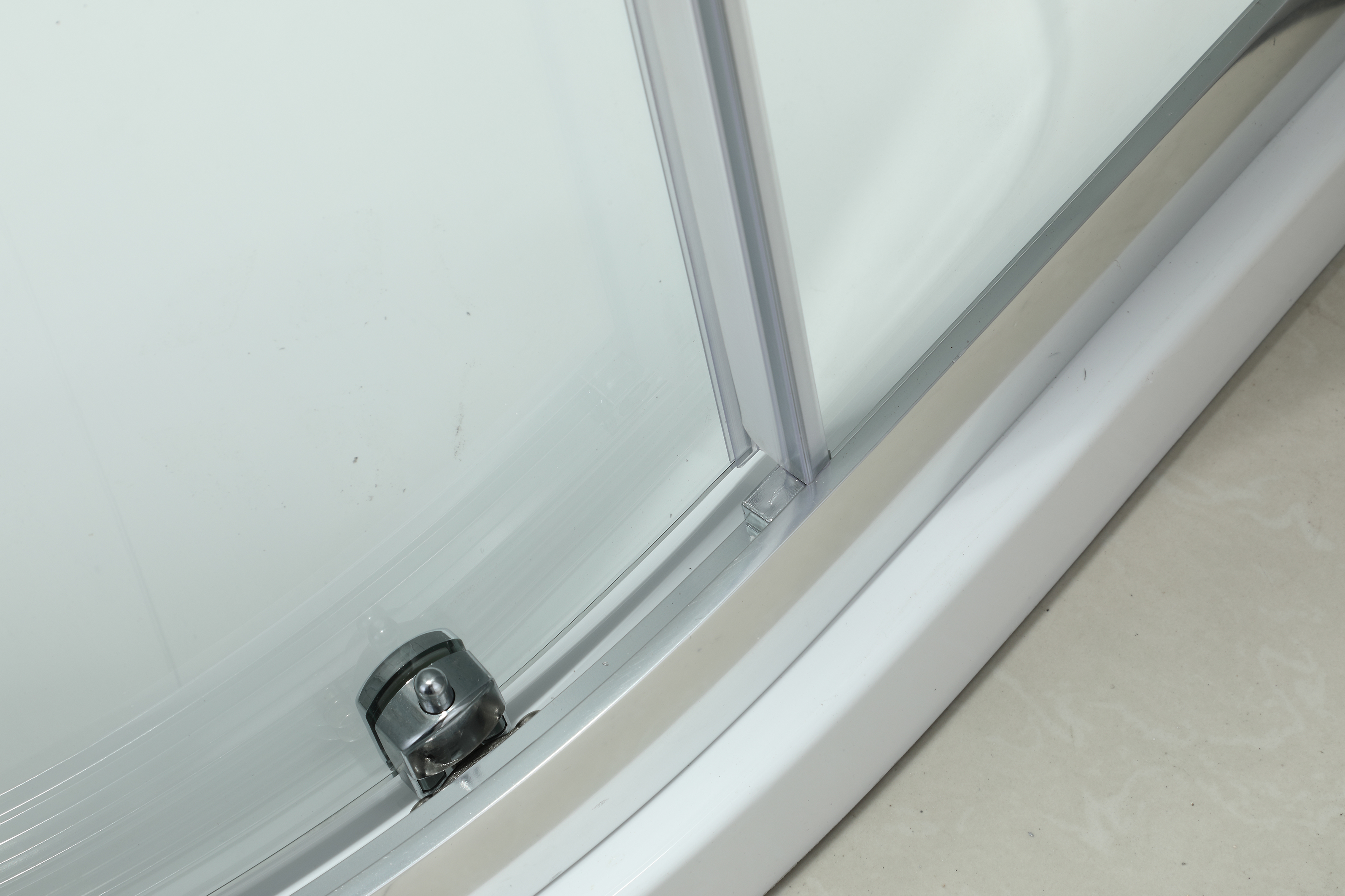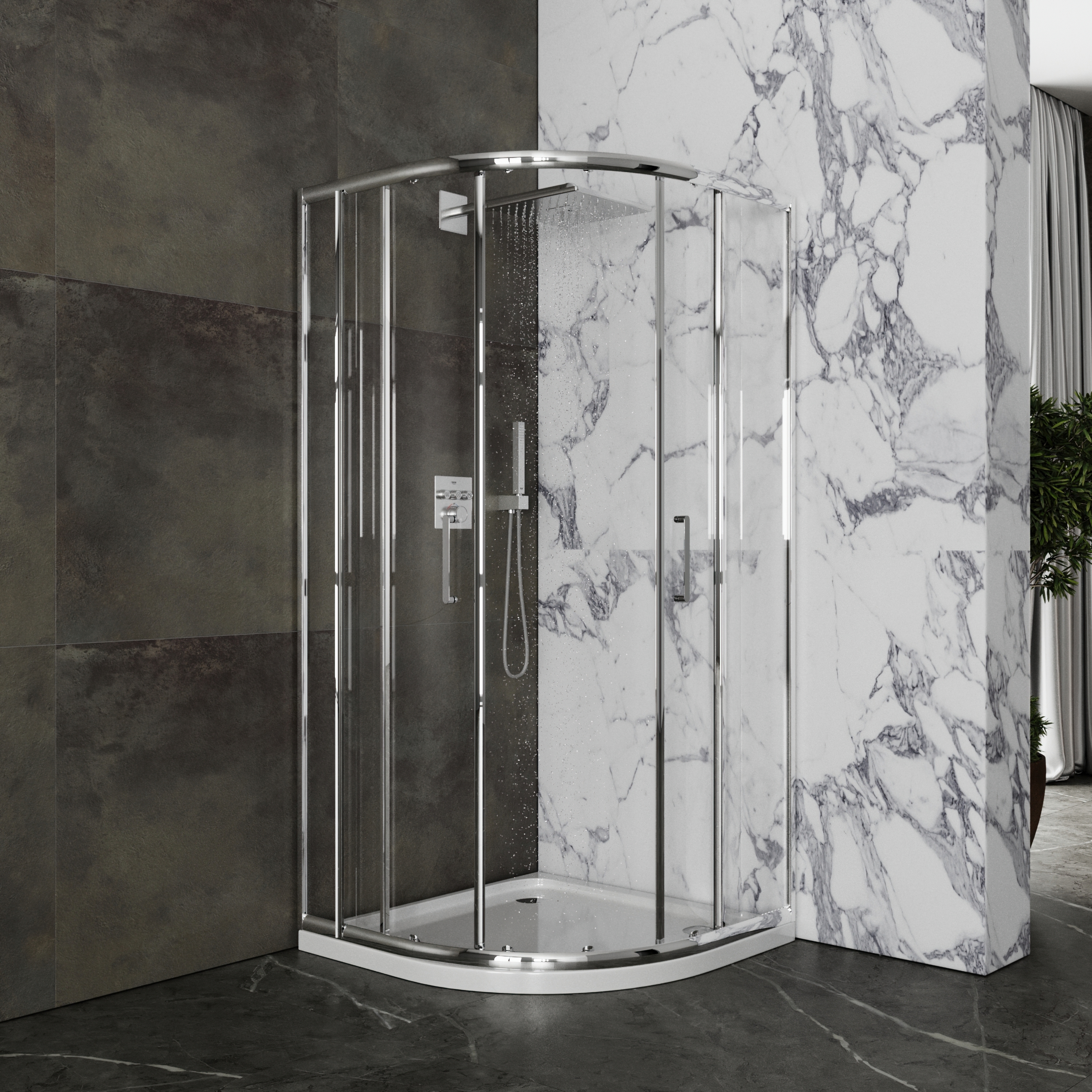 Душевой уголок Roxen Santi с прозрачными стеклами - полукруглое душевое ограждение с раздвижными дверями. Прочный профиль изготовлен из анодированного термостойкого алюминия со специальным покрытием UltraShine, которое на долгие годы сохраняет блеск изделия, предотвращает образование коррозии защищает от царапин. Герметичность изделия обеспечивают специальные силиконовые уплотнители. Удобные двойные ручки изготовлены из хромированной стали. Двойные металлические ролики на подшипниках обеспечивают мягкий ход, бесшумность и долгий срок службы. Ролики имеют хромированные накладки, которые не только защищают от попадания лишней влаги и мелкого мусора, но и придают эстетичный вид. Так же все ролики оснащены специальными кнопками, нажатием которых вы можете отодвинуть створку и произвести уборку малодоступных частей кабины. Конструкция роликов и пазов, по которым они двигаются, предотвращает перекос и заедание подвижных частей уголка. Cпециальная технология EasyFix обеспечивает быстрый и надежный монтаж алюминиевых профилей изделия. Уголок имеет универсальную установку - на пол, оборудованный сливным трапом, душевой поддон или подиум.