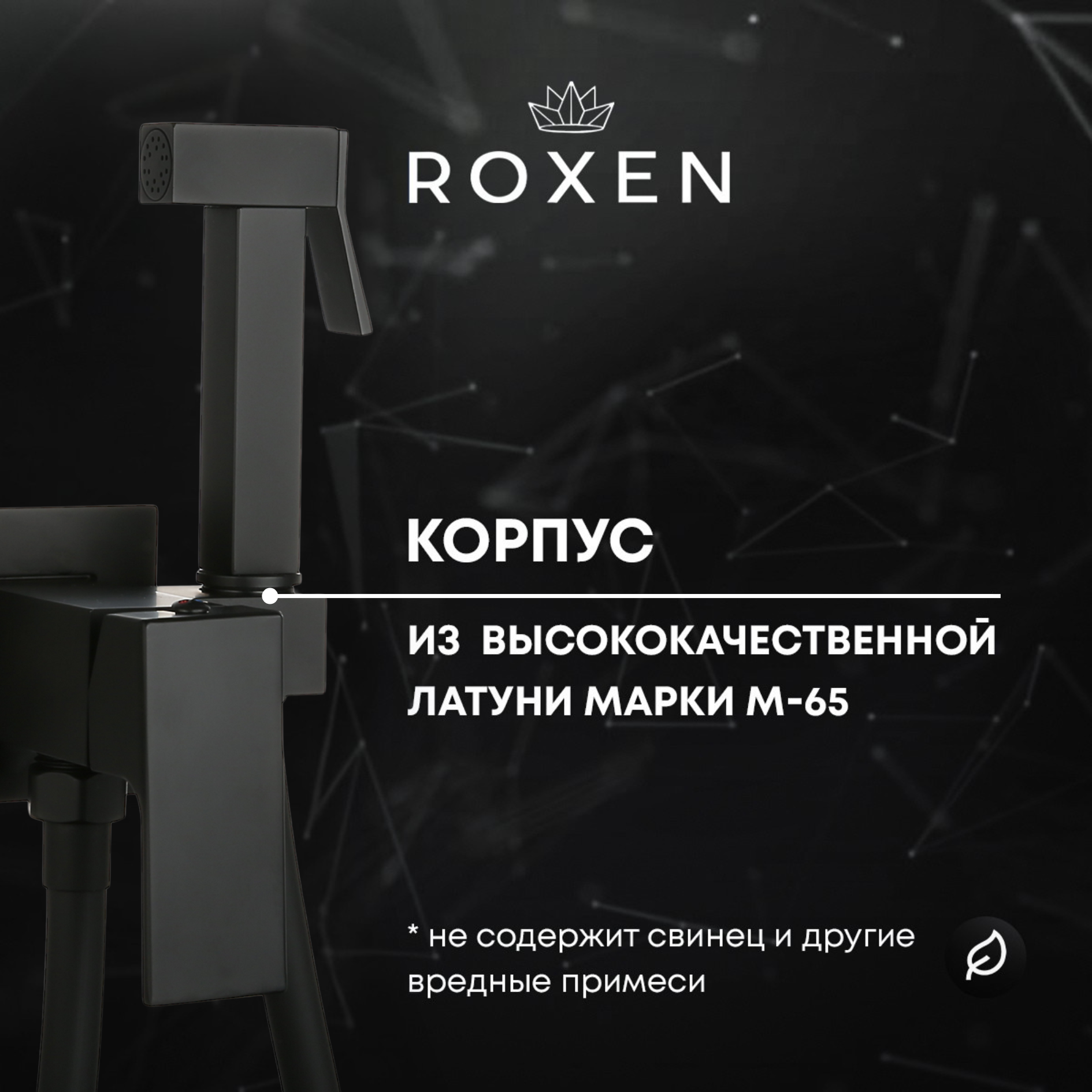 Смеситель встраиваемый Roxen Caspia 50096000-B с гигиеническим душем - стильная удобная модель в черном матовом цвете. Удобная ручная лейка с обратным клапаном, который предназначен для автоматического перекрытия обратного потока воды, что значительно экономит расход воды и защищает изделие от повреждений. Корпус смесителя изготовлен из высококачественной латуни марки MS-65, без содержания свинца и других вредных примесей. Смеситель имеет специальное покрытие, препятствующее образованию известковых отложений, что поможет избежать поломок и обеспечит более продолжительный срок эксплуатации изделия. Надежный керамический картридж устойчив к высоким температурам, имеет плавную регулировку напора и температуры воды. Износостойкий шток рассчитан на 500000 циклов. Смеситель имеет систему шумоподавления, которая обеспечивает бесшумную работу на протяжении всего срока использования. Прочное и износостойкое матовое покрытие устойчиво к механическим воздействиям и истиранию, практически не оставляет на себе следы от пальцев и капель воды. Держатель душевой лейки имеет силиконовую прокладку, которая позволяет избежать появление царапин. Силиконовый шланг с инновационной поверхностью Soft Flex имеет специальную защиту от заломов и перекручивания Anti-twist protection. Такой шланг не оставляет царапин и повреждений на сантехнике, полностью герметичен и надежен в использовании, благодаря гладкой поверхности прост в уходе. Длинна шланга 130 см. Внутренняя часть смесителя находится в коробе, что делает монтаж смесителя более удобным и надежным.