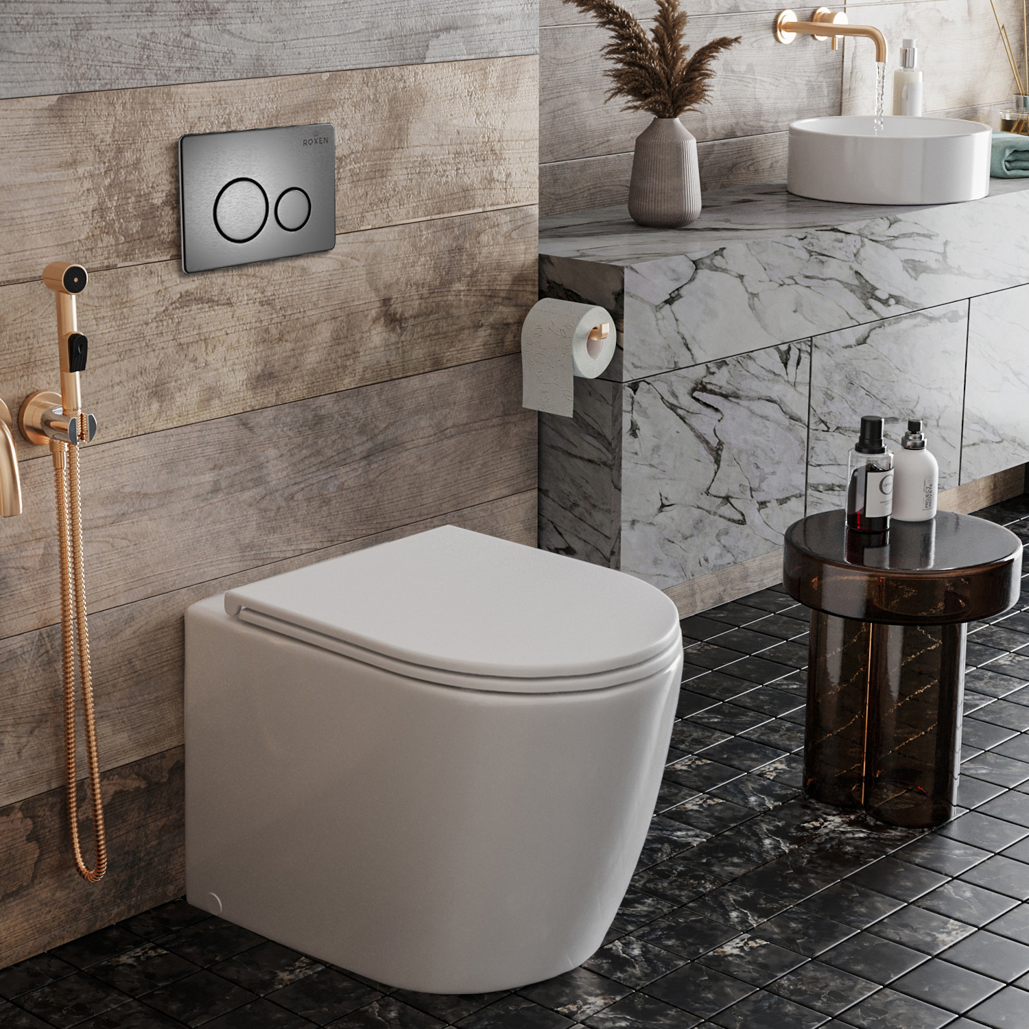 Комплект инсталляции для приставного унитаза 3 в 1 Roxen Attach 939252 - состоит из инсталляции для приставного унитаза Roxen Attach 710215 и кнопки для инсталляции Roxen Steel 420260G.