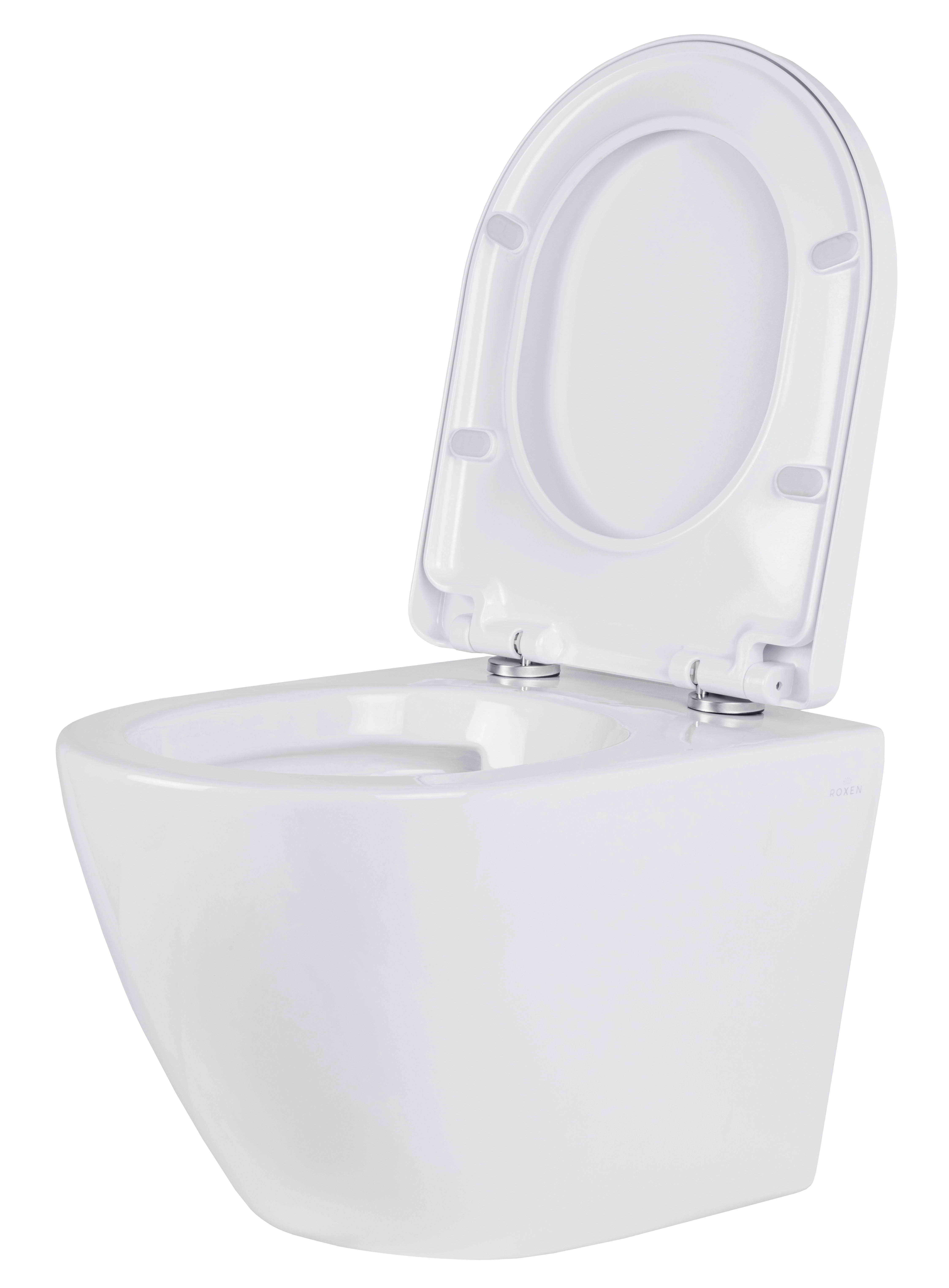 Подвесной унитаз Roxen Antares 530185-02 Rimless Soft Close - компактная модель с удобной безободковой чашей Pro-Rimless, благодаря чему нет труднодоступных зон для уборки.Технология смыва Tornado гарантирует превосходное омывание поверхности чаши, более экономный расход воды и низкий уровень шума при смыве. Изготовлен из санитарного фарфора Porcelain, который обеспечивает прочность изделия, белизну, абсолютно гладкую поверхность, отсутствие пор и углублений. Специальное антибактериальное покрытие Ultra Glide обеспечивает легкий уход, гигиеничность и первоначальный внешний вид на долгие годы. Модель укомплектована быстросъемным сиденьем с крышкой Soft Close (плавное опускание).