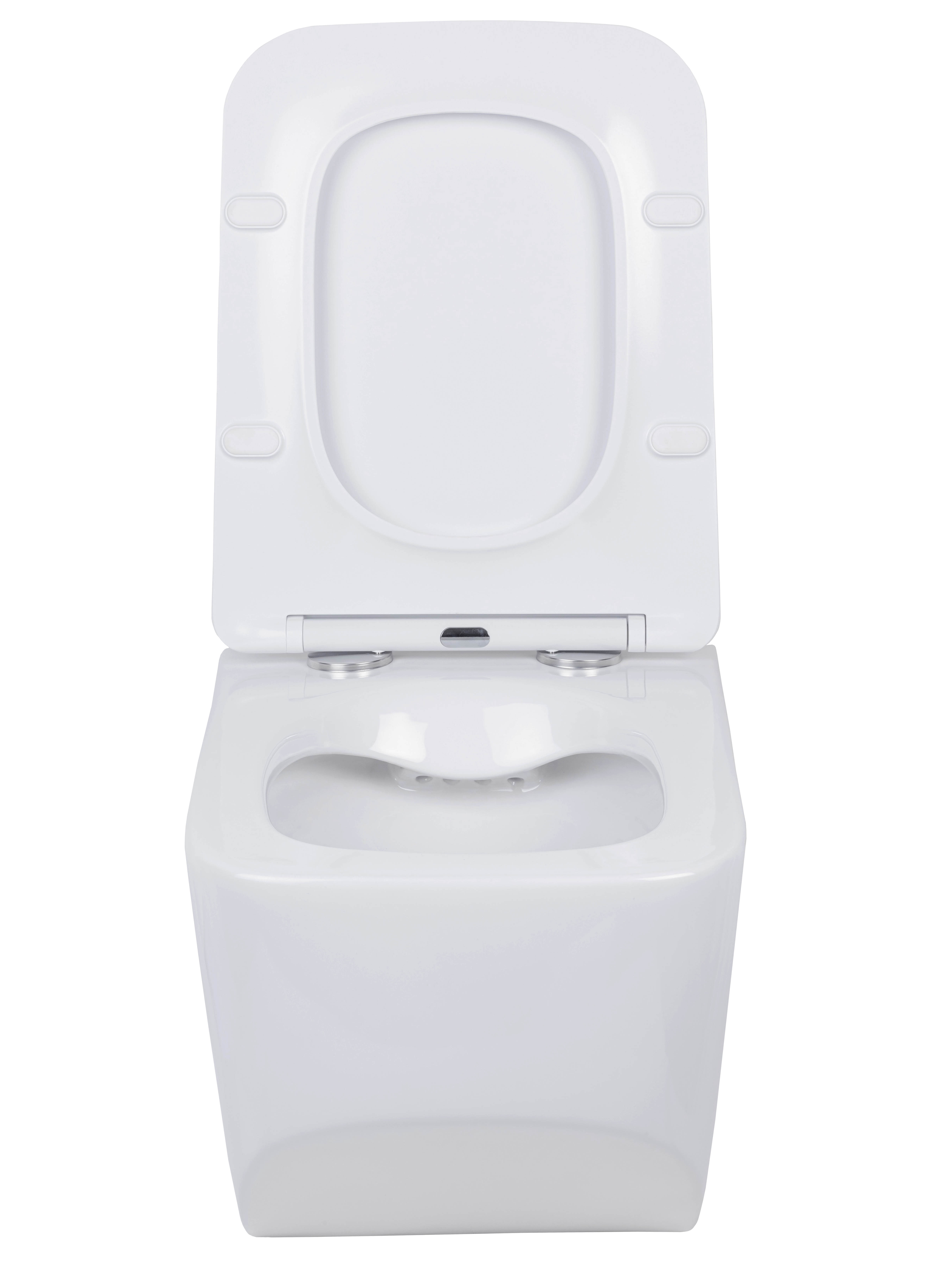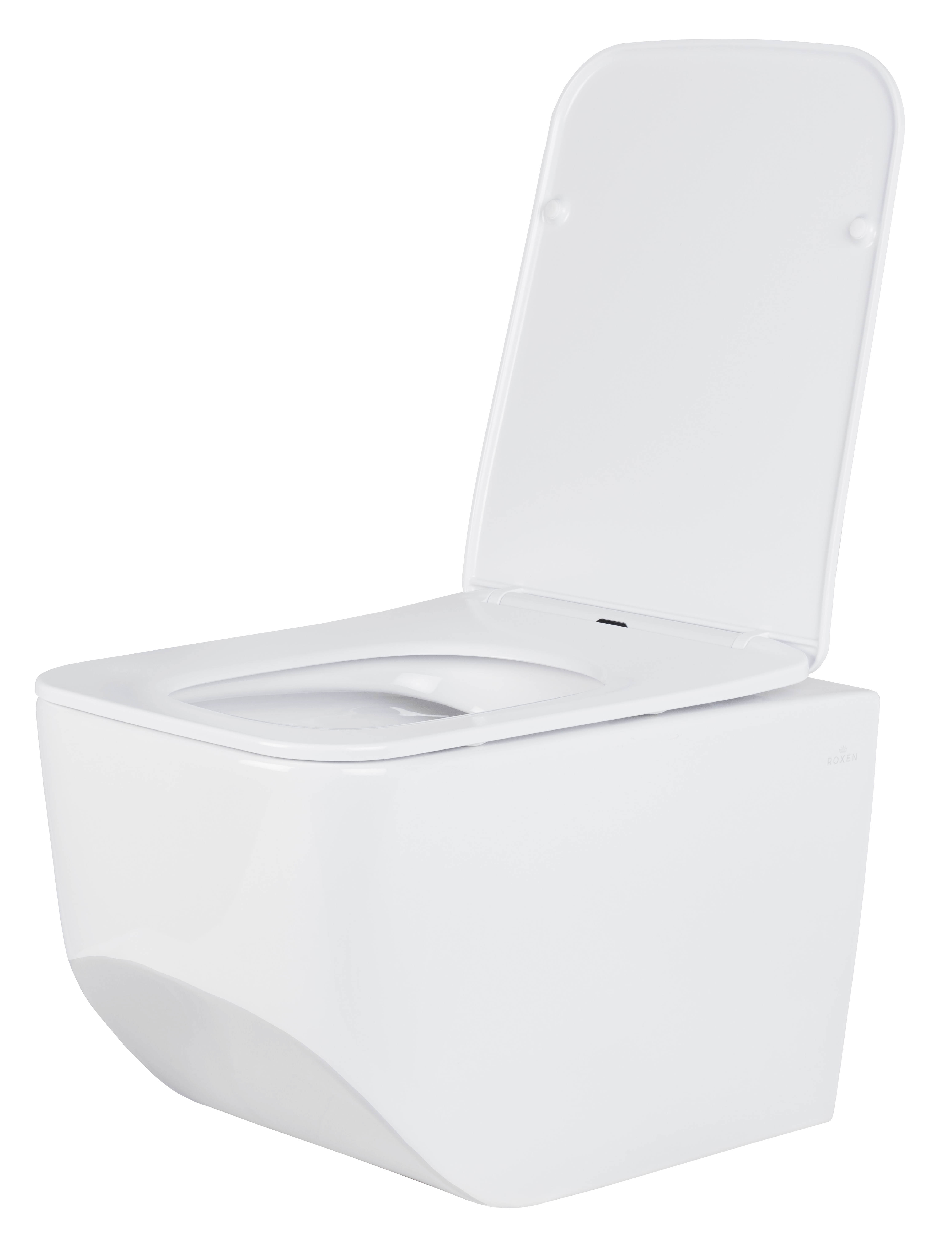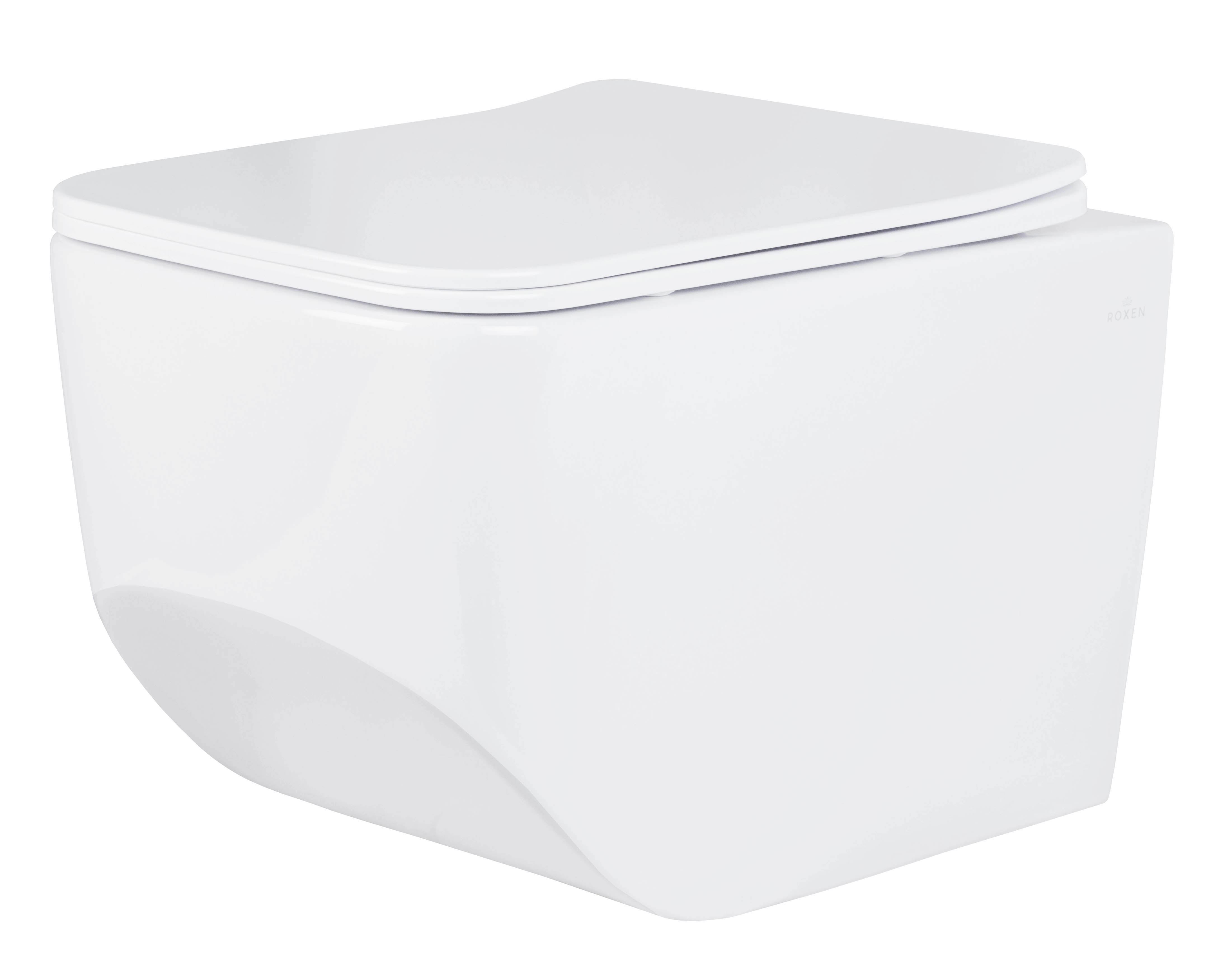 Подвесной унитаз Roxen Boro 530145-01 Rimless Soft Close - стильная оригинальная модель с удобной безободковой чашей Pro-Rimless, благодаря чему нет труднодоступных зон для уборки. Инновационная конструкция чаши унитаза позволяет избежать попадания брызг воды при смыве. Изготовлен из санитарного фарфора Porcelain, который обеспечивает прочность изделия, белизну, абсолютно гладкую поверхность, отсутствие пор и углублений. Специальное антибактериальное покрытие Ultra Glide обеспечивает легкий уход, гигиеничность и первоначальный внешний вид на долгие годы. Модель укомплектована тонким быстросъемным сиденьем с крышкой Soft Close (плавное опускание).