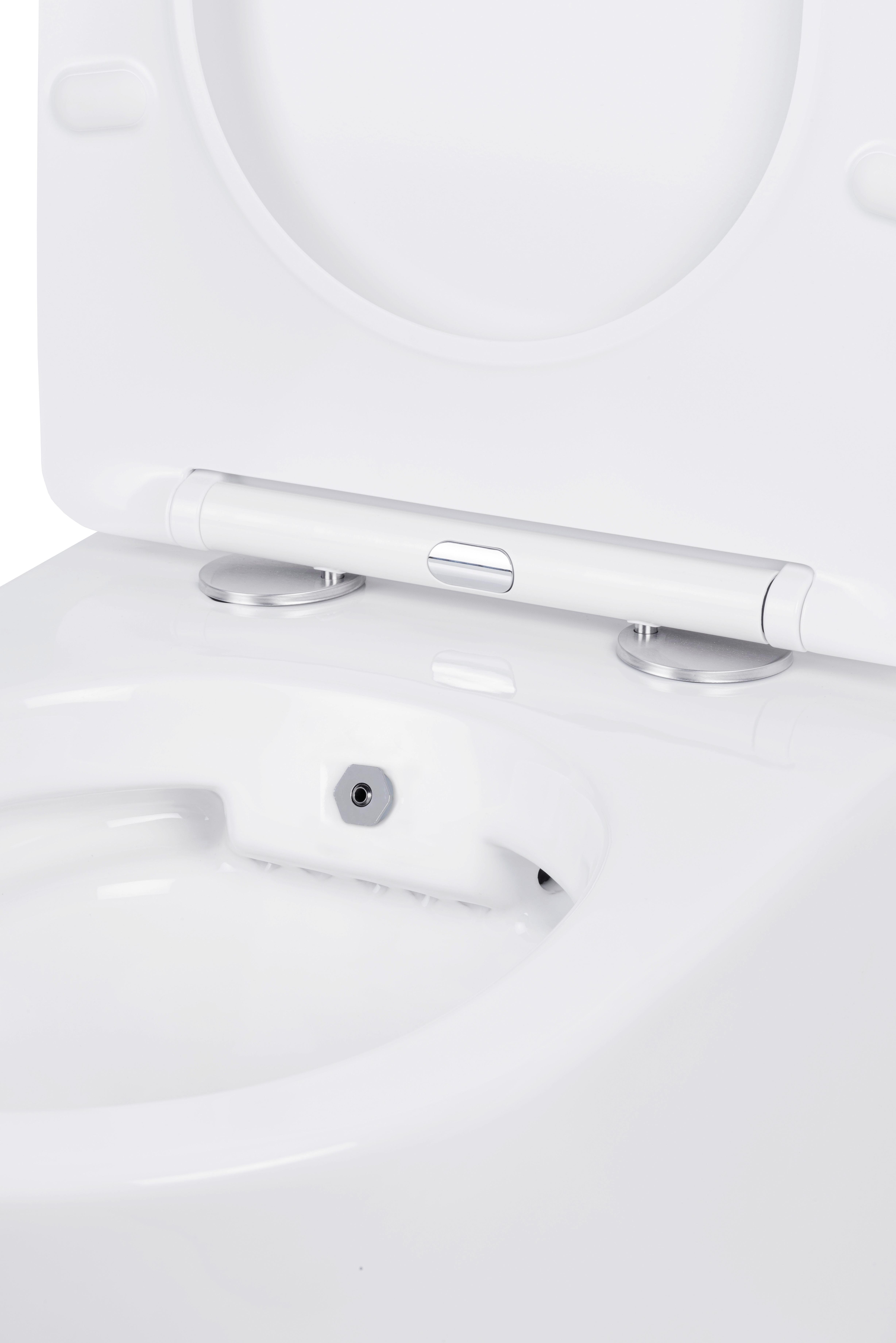 Подвесной унитаз Roxen Antares Bidet 530185-01X Rimless Soft Close с функцией биде - современная функциональная модель с удобной безободковой чашей Pro-Rimless, благодаря чему нет труднодоступных зон для уборки. Инновационная конструкция чаши унитаза позволяет избежать попадания брызг воды при смыве. Функция биде дает возможность удобного проведения гигиенических процедур. Изготовлен из санитарного фарфора Porcelain, который обеспечивает прочность изделия, белизну, абсолютно гладкую поверхность, отсутствие пор и углублений. Специальное антибактериальное покрытие Ultra Glide обеспечивает легкий уход, гигиеничность и первоначальный внешний вид на долгие годы. Модель укомплектована тонким быстросъемным сиденьем с крышкой Soft Close (плавное опускание).