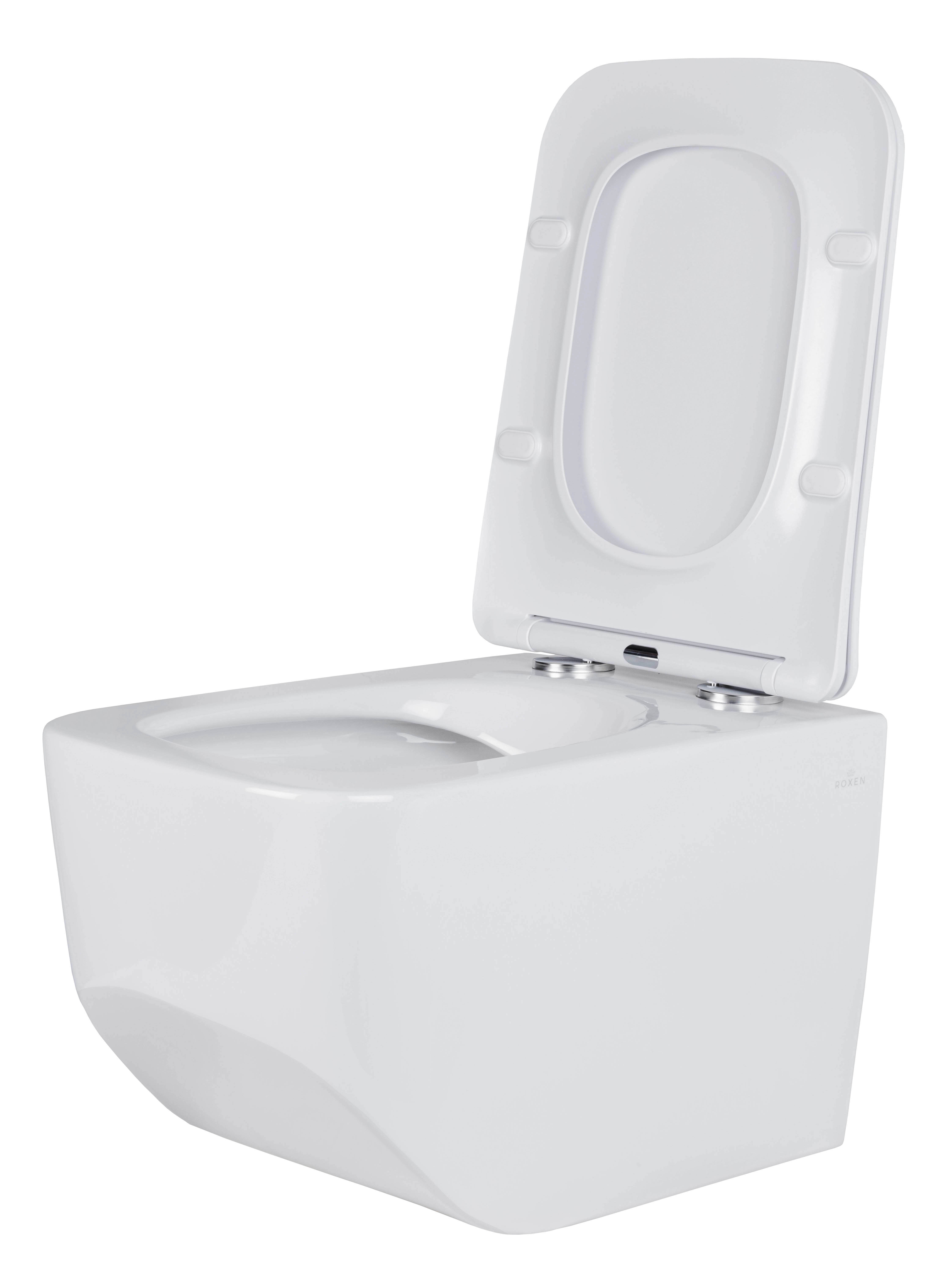 Подвесной унитаз Roxen Boro 530145-01 Rimless Soft Close - стильная оригинальная модель с удобной безободковой чашей Pro-Rimless, благодаря чему нет труднодоступных зон для уборки. Инновационная конструкция чаши унитаза позволяет избежать попадания брызг воды при смыве. Изготовлен из санитарного фарфора Porcelain, который обеспечивает прочность изделия, белизну, абсолютно гладкую поверхность, отсутствие пор и углублений. Специальное антибактериальное покрытие Ultra Glide обеспечивает легкий уход, гигиеничность и первоначальный внешний вид на долгие годы. Модель укомплектована тонким быстросъемным сиденьем с крышкой Soft Close (плавное опускание).