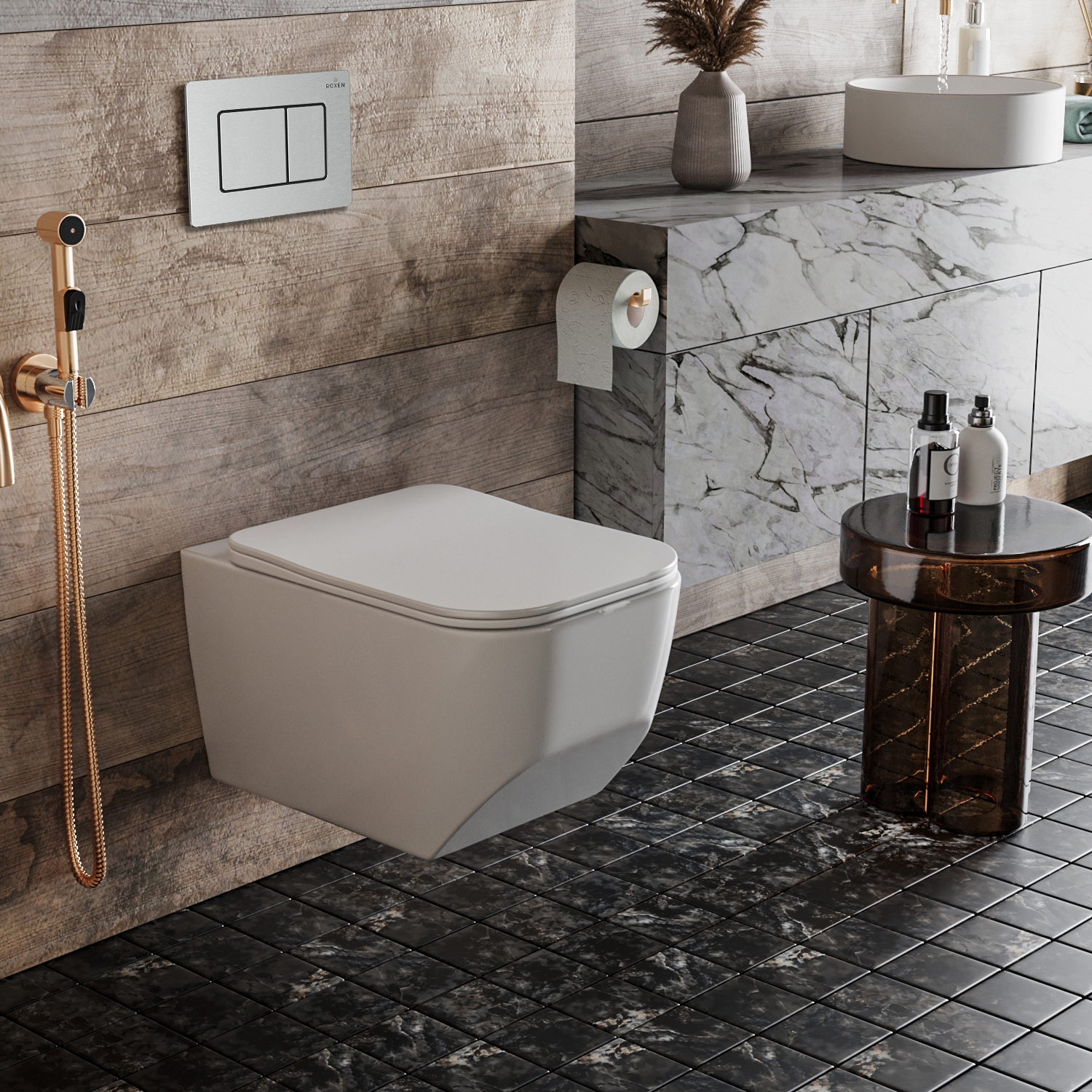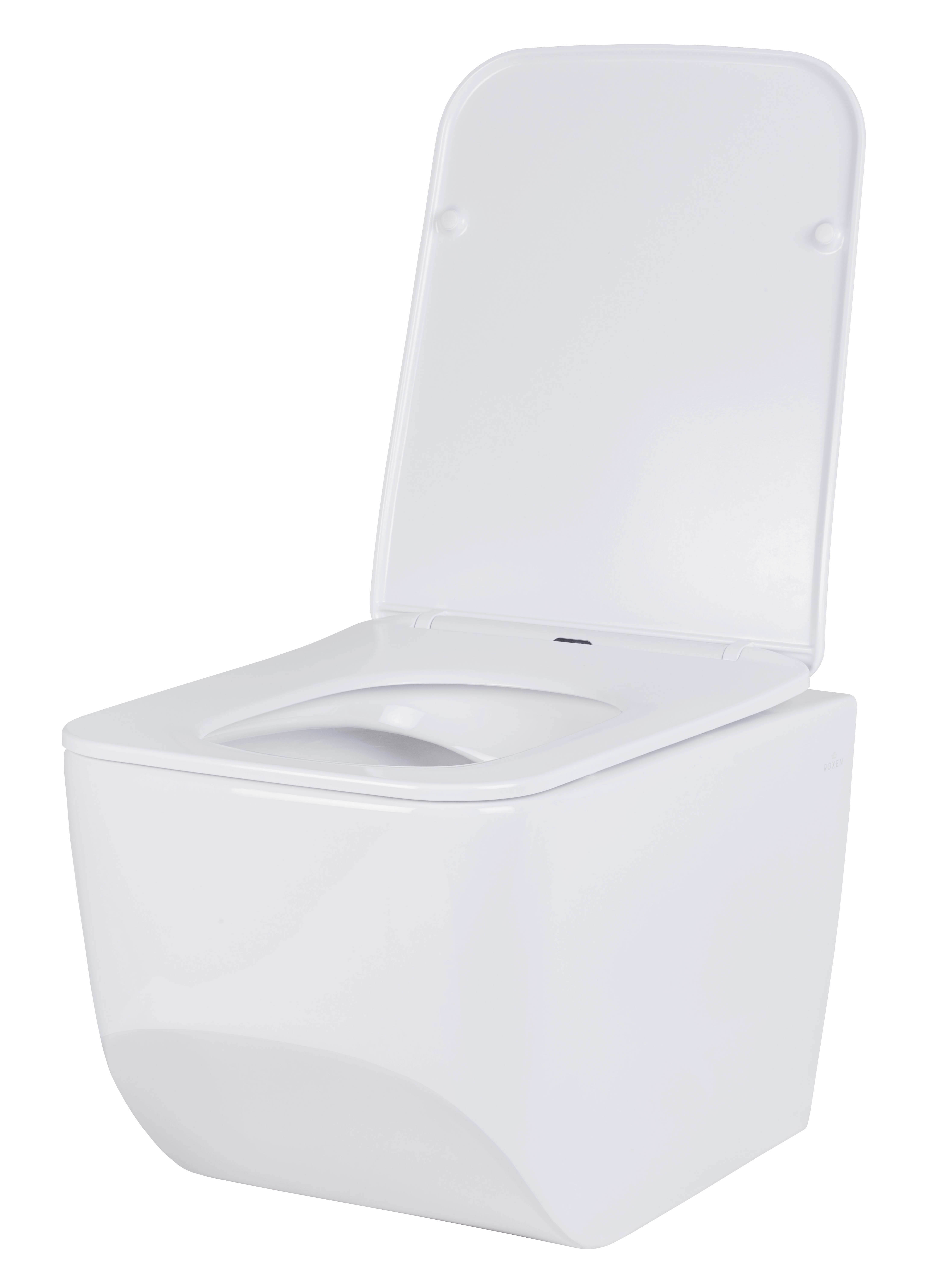 Подвесной унитаз Roxen Boro 530145-01 Rimless Soft Close - стильная оригинальная модель с удобной безободковой чашей Pro-Rimless, благодаря чему нет труднодоступных зон для уборки. Инновационная конструкция чаши унитаза позволяет избежать попадания брызг воды при смыве. Изготовлен из санитарного фарфора Porcelain, который обеспечивает прочность изделия, белизну, абсолютно гладкую поверхность, отсутствие пор и углублений. Специальное антибактериальное покрытие Ultra Glide обеспечивает легкий уход, гигиеничность и первоначальный внешний вид на долгие годы. Модель укомплектована тонким быстросъемным сиденьем с крышкой Soft Close (плавное опускание).
