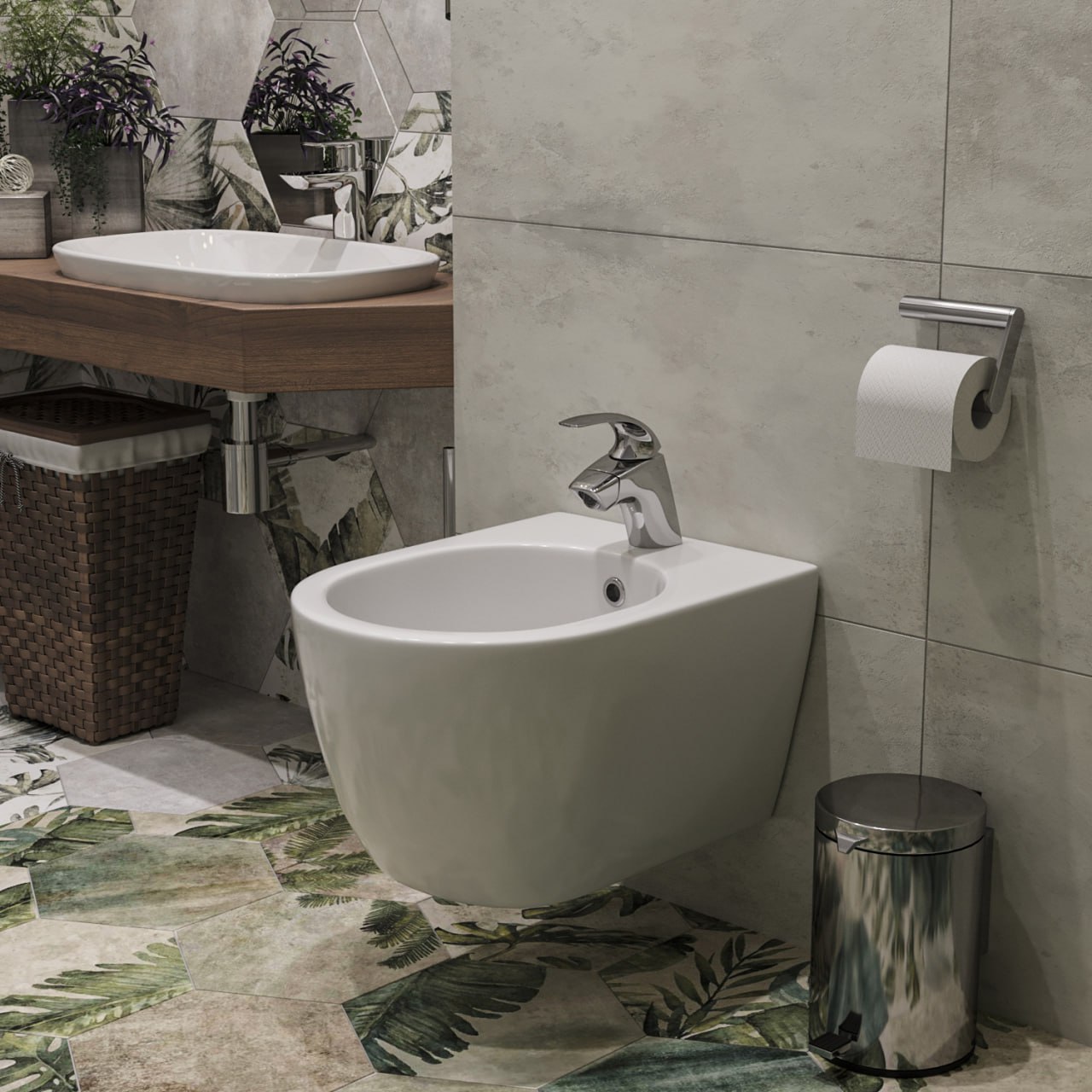 Подвесное биде Roxen Antares 400185-00 - классическая подвесная модель с округлой чашей и отверстием для смесителя. Биде изготовлено из санитарного фарфора Porcelain, который обеспечивает прочность изделия, белизну, абсолютно гладкую поверхность, отсутствие пор и углублений. Специальное антибактериальное покрытие Ultra Glide обеспечивает легкий уход, гигиеничность и первоначальный внешний вид на долгие годы.