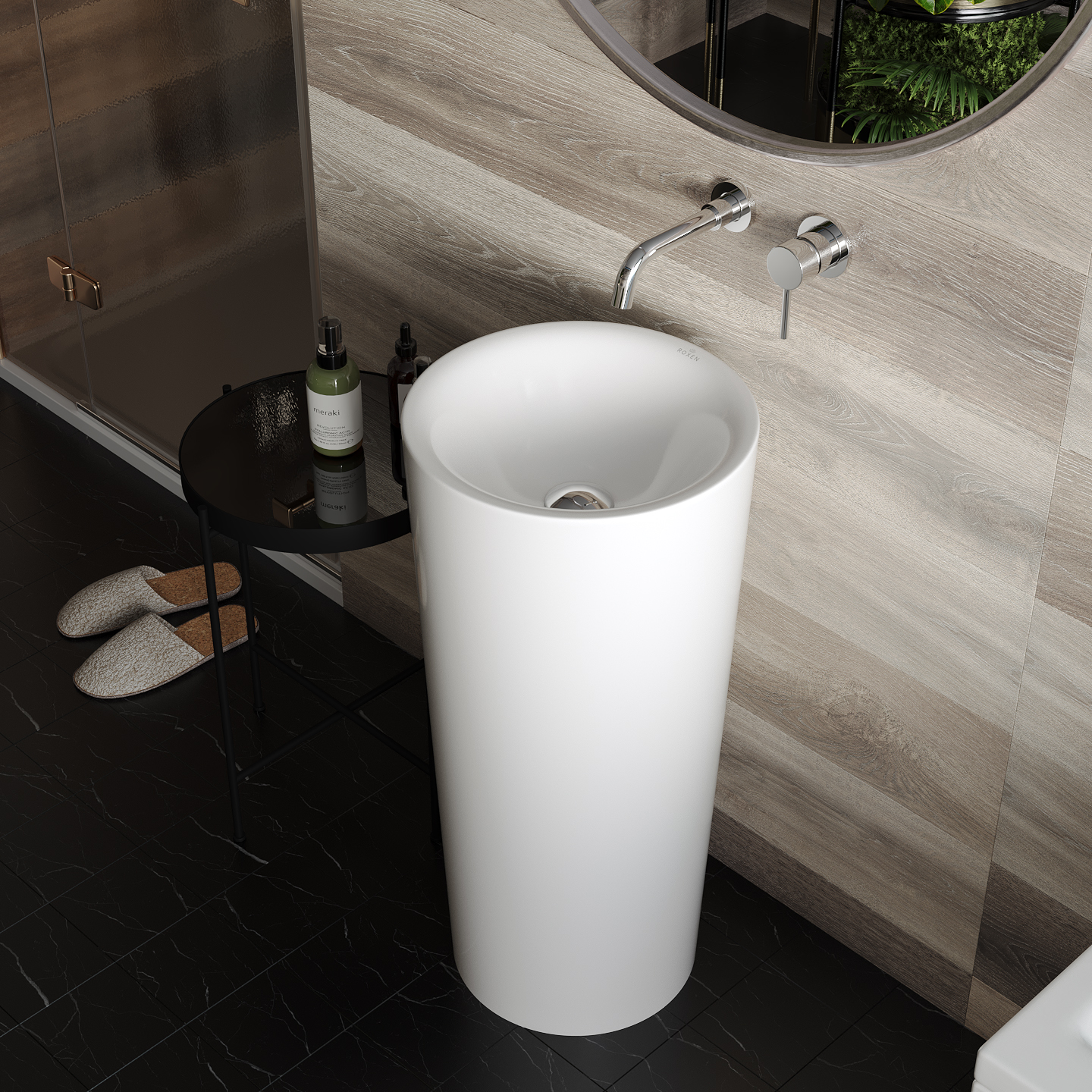 Умывальник Roxen Lila 570905 - модель в современном дизайне, для установки на пол. Умывальник изготовлен из санитарного фарфора PorCelain, который обеспечивает прочность изделия, абсолютную белизну и гладкую поверхность. Благодаря уникальному процессу шлифовки (машинная + ручная) достигается отсутствие пор и углублений. Специальное антибактериальное покрытие Ultra Glide обеспечивает легкий уход, гигиеничность и первоначальный внешний вид на долгие годы. Оптимальная высота чаши удобна в использовании и не позволяет каплям воды попадать на столешницу.