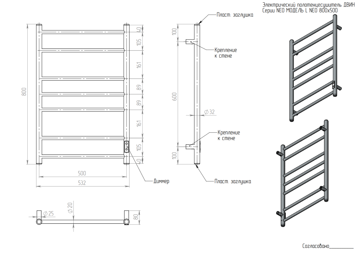 Электрический полотенцесушитель ДВИН L с димером из серии "NEO"