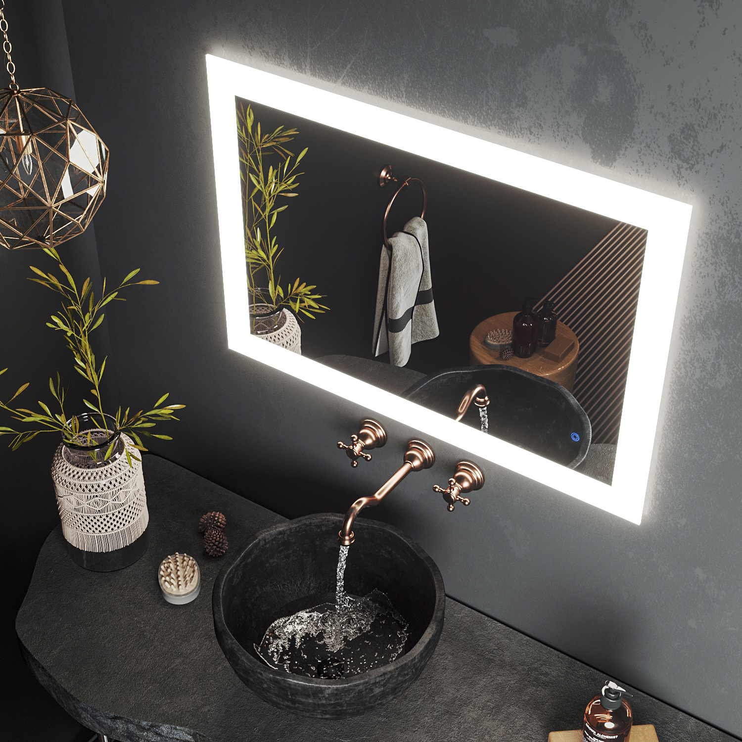 Зеркало Roxen Bliss - классическая модель с широкой LED-подсветкой ко контуру зеркала и сенсорным выключателем, который срабатывает при легком касании. Подсветка зеркала располагается так, что создается эффект рамки, которая выполняет функцию полноценного светильника, а так же создается эффект "парящего зеркала" за счет рассеивания света по стене. Благодаря удобному расположению кнопки включения и продуманной системе креплений вы можете расположить зеркало горизонтально (кнопка включения внизу слева), либо вертикально (кнопка включения внизу справа) и создать свой неповторимый интерьер. В отличие от аналогичных моделей, в зеркалах Roxen используется светодиодная лента LED Stripe - 120 диодов на 1 метр, которая обеспечивает мягкое равномерное свечение по всему периметру изделия и позволяет использовать его не только как яркий интерьерный элемент, но и как дополнительный источник освещения комнаты.