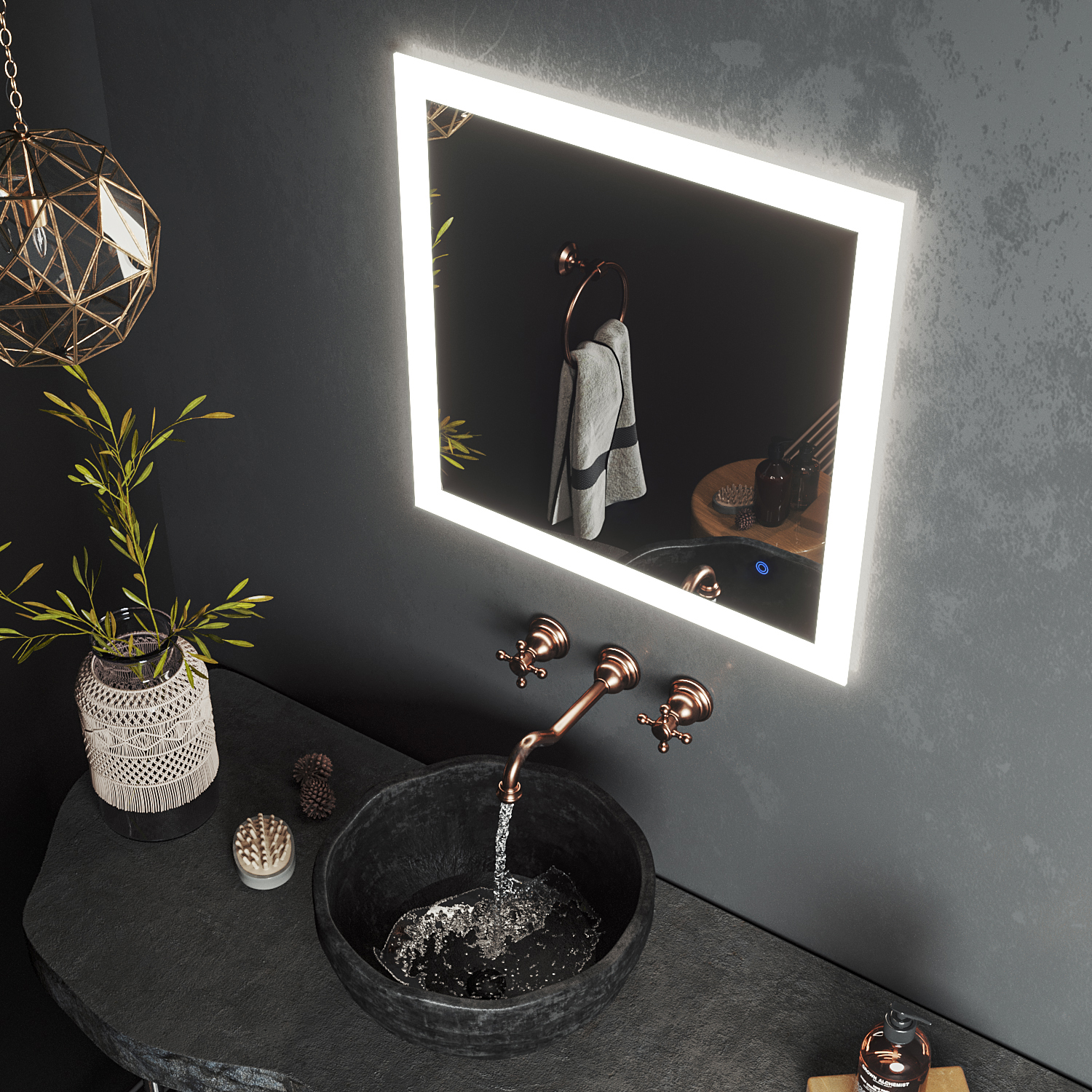 Зеркало Roxen Bliss - классическая модель с широкой LED-подсветкой ко контуру зеркала и сенсорным выключателем, который срабатывает при легком касании. Подсветка зеркала располагается так, что создается эффект рамки, которая выполняет функцию полноценного светильника, а так же создается эффект "парящего зеркала" за счет рассеивания света по стене. Благодаря удобному расположению кнопки включения и продуманной системе креплений вы можете расположить зеркало горизонтально (кнопка включения внизу слева), либо вертикально (кнопка включения внизу справа) и создать свой неповторимый интерьер. В отличие от аналогичных моделей, в зеркалах Roxen используется светодиодная лента LED Stripe - 120 диодов на 1 метр, которая обеспечивает мягкое равномерное свечение по всему периметру изделия и позволяет использовать его не только как яркий интерьерный элемент, но и как дополнительный источник освещения комнаты.